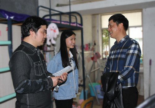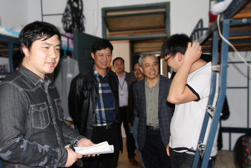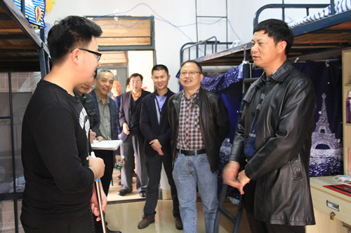 校长向罗生(左二)、副校长邓建国(右二)一行走访学生宿舍