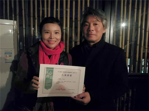 全国高等学校建筑学学科专业指导委员会美术教学工作委员会主任、东南大学教授赵军先生为王玮璐颁发入选证书