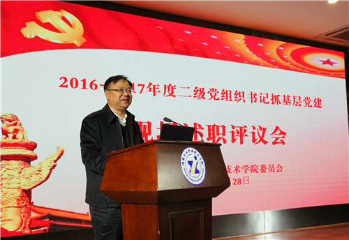 本网讯 12月28日上午,我校2016-2017年度二级党组织书记抓基层党建工作现场述职评议会在图书馆学术报告厅举行。党委书记刘建湘、校长向罗生等校领导,调研员、党群部门负责人、各二级党组织书记、各二级学院院长、各基层党支部书记、各二级党组织教职工党员代表、各二级学院学生党员代表近90人参加了会议。会议由学校党委副书记陈超主持。