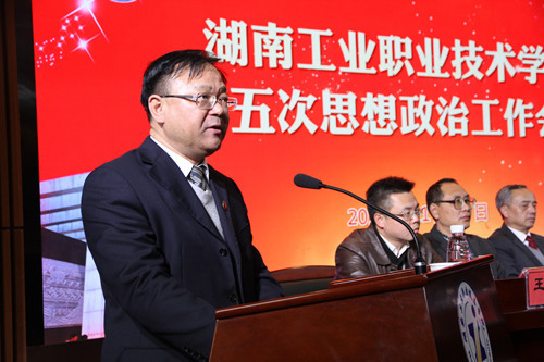 刘建湘全面回顾了近五年来学校思想政治工作取得的主要成绩。五年来,我校全面贯彻党的教育方针,坚持社会主义办学方向,牢牢把握立德树人根本任务,育人为本、德育为先,围绕中心、服务大局,积极推进思想政治工作改革创新,引导学生成长成才,关注教师发展增值,校园主流思想舆论健康向上,全校师生对中国特色社会主义和中华民族伟大复兴充满信心,思想政治工作取得了一系列可圈可点的成绩:思想建设成效进一步提升,基层党建基础进一步夯实,意识形态防线进一步筑牢,思政课程质量进一步提高,大学生思政教育进一步强化,思政工作水平进一步提升。