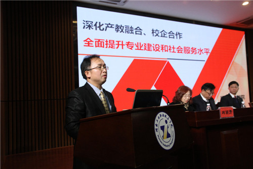 我校机械工程学院副院长李强作《深化产教融合、校企合作,全面提升专业建设和社会服务水平》主题发言