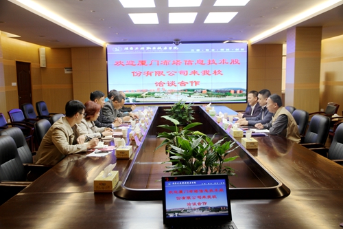 本网讯 11月2日上午,厦门布塔信息技术有限公司副总经理陈军利、项目总监黄安乐和布塔学院院长鲁刚一行来校,就校企合作进行洽谈。
