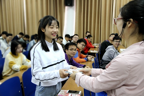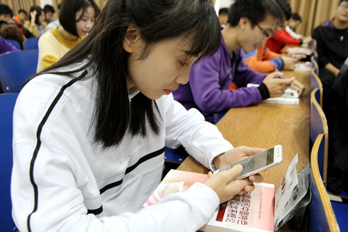 思想政治教育部长苏茂芳介绍,与以往上课不同的是,学生们通过手机APP软件,在线测试人民日报精心准备的十九大知识问卷。问卷共有100道题,涉及十九大报告的各个方面,限时30分钟完成在线提交。