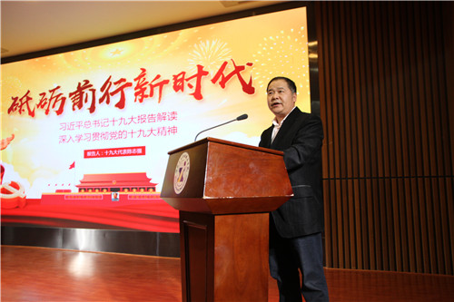 刘建湘在讲话中强调,学习宣传贯彻党的十九大精神,是当前和今后一段时期全党全国的首要政治任务。本场讲座是我校深入学习宣传贯彻十九大精神系列安排中的重要组成部分。他要求,学校各二级党组织要研究制定学习宣传贯彻落实党的十九大精神工作方案,要通过形式多样的宣传宣讲活动,在全校营造学习宣传贯彻十九大精神的浓厚氛围;全体教职员工要以十九大精神和习近平新时代中国特色社会主义思想为指引,深入推动学校卓越院校建设,促进学校发展上新台阶,为经济社会发展培养更多德才兼备、全面发展的优秀人才。