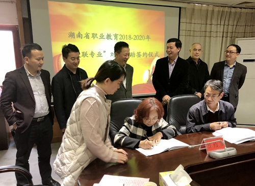11月14日上午,省教育厅组织举行“湖南省职业教育2018-2020年‘院校联专业’对口援疆协议签约仪式”,我校副校长邱丽芳代表学校与吐鲁番职业技术学院签约,重点援助该校机电一体化技术专业建设。
