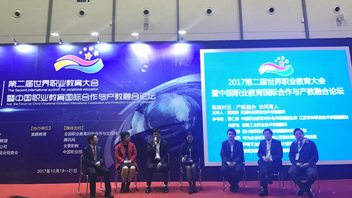 我校校长向罗生作为院校特邀嘉宾与华为、甲骨文、菲尼克斯等全球知名企业负责人进行了高峰对话。向罗生介绍了我校国际交流合作、产教融合的基本情况,针对如何聚焦国际合作、产教融合、“一带一路”、产业升级等主题,向在场的嘉宾提出了如何规范校企合作、协调校企之间的关系以及成立企业学院等论题,受到在场嘉宾和参会人员的热烈响应。