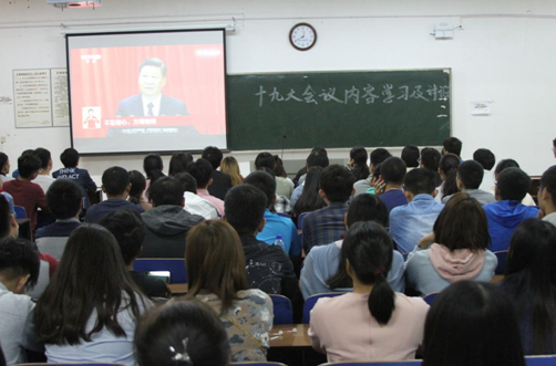 本网讯 10月27日,党校第九期发展对象培训班全体学员在2404教室集中学习党的十九大精神。