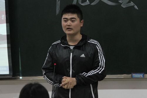 室内2016-4班张雄同学发言:“我作为入党发展对象中的一员,要进一步理解学习报告精神的实质内涵,提高自身的学习和工作能力;打铁还须自身硬,我要严格要求自己,清清白白做人,干干净净做事,撸起袖子加油干,不负伟大的新时代!”