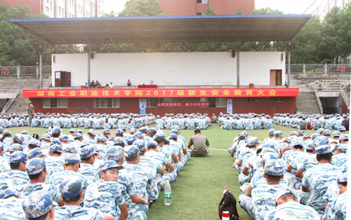 本网讯 9月22日下午,我校在田径场举行了2017级新生安全教育大会。大会由我校保卫处处长段可主持。含浦派出所警官陈万红、建设银行工作人员代表张猛、湖南省消防协会教官苏建立、保卫处相关工作人员及4800余名新生参加大会。