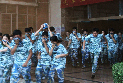 安全教育大会结束后,4800余名新生在教学楼进行了应急疏散演练。火灾警报声响起后,在专业人员引导下,全体新生井然有序的在规定时间内逃离火灾现场,圆满完成了此次演练。