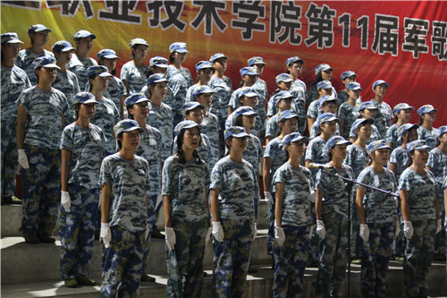 比赛中,各方阵队热情饱满、歌声嘹亮,统一的着装、挺直的身姿、坚毅的目光,彰显出军人的风采。《十送红军》、《打靶归来》、《当兵的人》等,一首首军歌唱出了同学们在军训生活中的坚持与勇敢。一时间,铿锵有力的军歌声回荡在校园中,引来了师生们驻足欣赏。