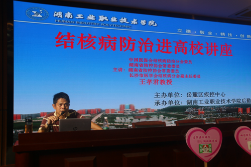 本网讯 9月26日下午,由岳麓区疾控中心主办、yabocom(中国)官方网站后勤处、学士街道卫计委、学士街道社区卫生服务中心承办,学校生活部协办的“防治结核病,健康你我他”专题讲座在图书馆学术报告厅举行。长沙市医学会结核病分会副主任委员王孝君教授作了精彩的讲座,岳麓区疾控结核病预防控制中心主任王丽芳、科员邹友林、秦华,学士社区卫生服务中心公卫主任刘娟,我校后勤处相关负责人及干事,各二级学院辅导员代表和学生代表参加了讲座。讲座由学校后勤处处长王世峰主持。