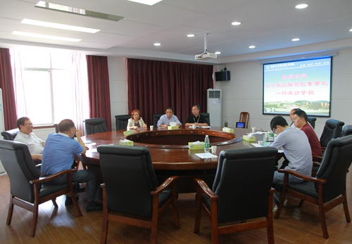签约仪式前,双方在第五会议室举行了座谈会。学校党委书记刘建湘、校长向罗生,副校长董建国、邱丽芳及相关部门、二级学院负责人与陈吉红一行进行了深入交流。
