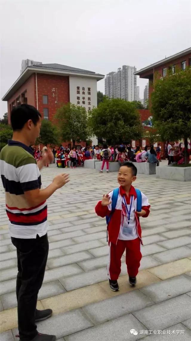 这天是他孩子上小学的第二天,孩子快乐无邪的笑容让他心情愉悦。