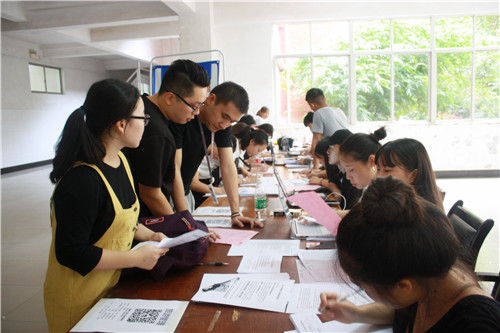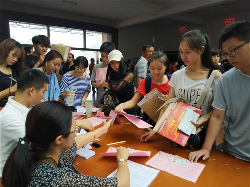 我校在长沙高铁站、火车站、汽车站等多个主要交通站设立了接站台,一批又一批新生和家长在接站志愿者的引导下乘坐迎新大巴来到学校。校园内设有多个迎新服务点及清晰明了的指示牌,我校志愿者热情带领新生报到并介绍校园概况。各学院、相关职能部门工作人员坚守岗位,引导新生有条不紊的完成相关报到流程。各院报名点内,我校宣传片、校歌的播放引新生驻足观看、聆听。