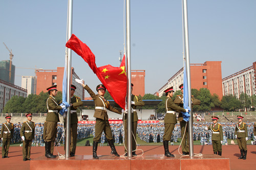 开学典礼在庄严肃穆的升旗仪式中拉开序幕。