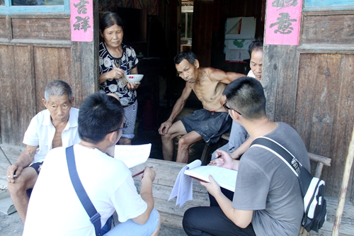 炎炎烈日、道路崎岖遥远阻止不了调研队员们的脚步,他们与村干部深入沟通,熟悉工作流程,到群众中了解贫困户当前的生活状况,清查与补充村级档案以及精准扶贫攻坚作战图,走访调研与资料整理交替进行着。