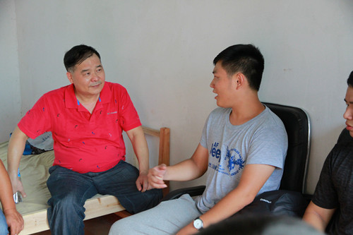 我校党委书记刘建湘(左)一行看望扶贫调研师生并展开座谈