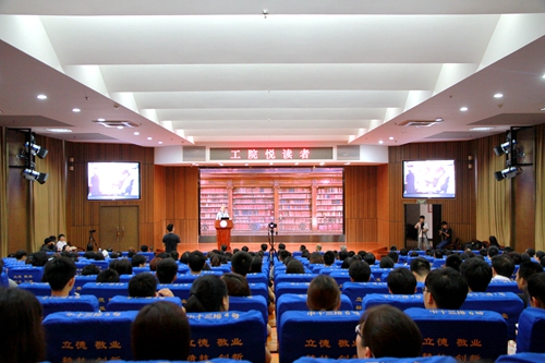 本网讯 6月13日下午,由我校图书馆、党委宣传部、团委联合打造的读书精品节目“悦读者”第二期在图书馆多功能报告厅精彩开讲。本期活动由全国机械职业教育产教合作委员会副主任、省高职院校机械制造与自动化专业带头人、我校发展规划处处长彭跃湘教授来与各位听众共同“策”《围城》。活动由李可丁、刘畅两位老师主持。
