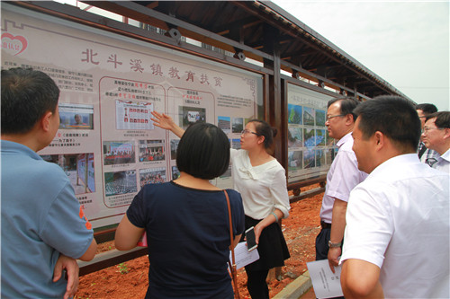 在北斗溪镇政府,培训班一行与该镇镇长舒均军、镇党政办主任马细连等展开座谈。在舒均军、马细连的讲解下,培训班学员们了解了该镇历史文化、矿产资源、发展规划和近几年“硬件”发展、“软件”发展、制度保障、群众反馈以及所获荣誉等方面情况,并围绕产业扶贫、教育扶贫、基层党建、留守儿童帮扶等工作展开了交流。