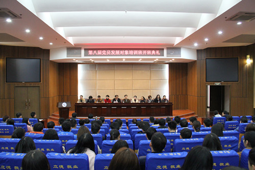 本网讯 3月17日,院党校第八期党员发展对象培训班开班典礼在图书馆多功能报告厅举行。学院党委副书记、党校校长陈超,学院调研员刘琼、学院党校副校长陈方以及各系(院)学生党支部书记出席了开班典礼。本次典礼由培训班班主任罗德贤主持。