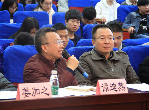 副院长邓建国表示,虽然本次比赛准备时间不长,但相较前几届比赛质量和数量都有提高,这表明,创新创业不再只是空头的口号。同时,他鼓励同学们平时要多想点子、方案和作品,学会扬长避短,取长补短。只有具较高的科学素养、扎实的专业功底、执着的科学精神追求,创新创业才有大幅发展。