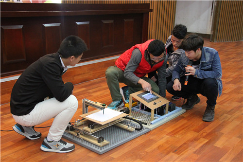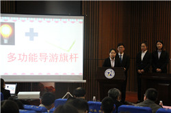 大赛共分为PPT介绍项目、选手答辩、评委评分三个环节。本次大赛是从37个报名参赛项目中经过初评选出的13支队伍代表参加决赛。在“洞穴机器人”、“智能轮椅设计”、“跳舞机”、“干洗刷”等现场作品展示过程中,选手与评委观众进行的趣味互动将比赛多次推向高潮。其中“智能轮椅”等项目使评委们对此项目的实施与前景持乐观态度,展示作品“多功能写生拉杆箱”引起了评委们的极大兴趣,“积阅-互联网智能图书馆”项目的创意点也获得了评委的认可。