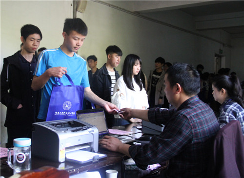本网讯 4月14日,我院2017年单独招生考试前一天,考生们来到学校进行现场资格审核并领取准考证。