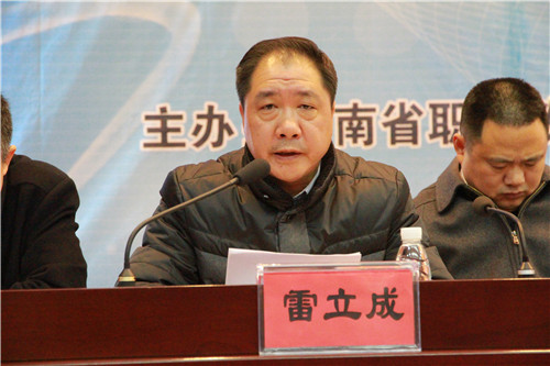 湖南省职业教育与成人教育学会会长田刚在会上讲话