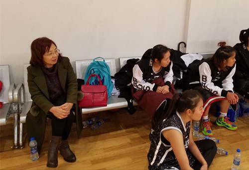 我院副院长邱丽芳(左一)来到比赛现场为我院健儿加油