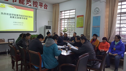 本网讯 12月1日上午,学院副院长张志勇带领监审处副处长邱玮玲、思想政治教育部部长苏茂芳、党政办副主任黎永祥、监审处干事陈佳等5人督查组,来后勤处直属支部督查“开展学习贯彻全会精神深入推进学习教育”情况。后勤支部领导成员、各党小组组长、各科室科长、党员代表和群众代表十余人参加督导检查。