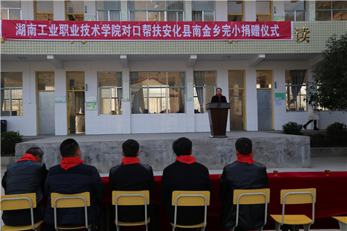 乡长刘金山在现场致辞中指出,安化是一个人杰地灵的地方,但是由于经济历史等原因,安化的教育事业还欠发达,需要社会各界的支持和各级政府的努力,yabocom(中国)官方网站情系安化教育事业、心系南金乡中心学校师生是对安化教育事业的鼓励和鞭策。他表示将加大对全乡教育的关心和投入,努力提升南金教育教学质量,号召南金完小同学们将工业职院的关爱化作勤奋学习、立志成才的强大动力,用优异的成绩来回报社会、政府的关心和关爱。