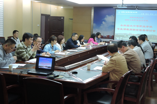 本网讯 10月17日,在学院教务处的组织下,我院与湖南科技大学就2015级、2016级本科层次中等职业学校专业课教师联合培养的教学工作举行了教学交流研讨会。参会人员有我院副院长邱丽芳,机械工程系、汽车工程学院负责人及部分本科班授课教师代表,以及湖南科技大学机电工程学院、材料科学与工程学院的教学负责人与专业负责人。