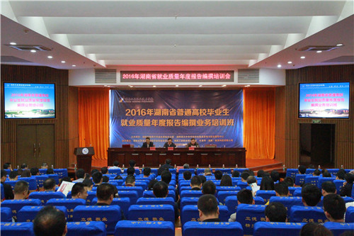 本网讯 为贯彻落实《教育部关于做好2016届全国普通高等学校毕业生就业创业工作的通知》以及《教育部办公厅关于编制发布高校毕业生就业质量年度报告的通知》要求,切实做好普通高校毕业生就业质量调研和年度报告编制发布工作,10月19日,2016湖南省普通高校毕业生就业质量年度报告编撰业务培训班在我院多功能报告厅举行。