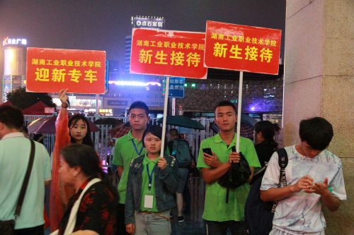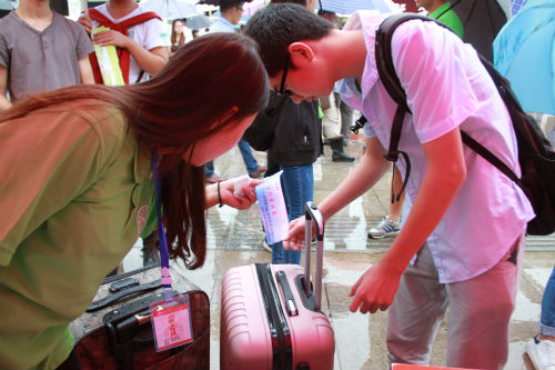 从新生抵达车站直至到达校园并完成报到,一路都有志愿者相伴:校外,我院分别在汽车西站、南站、北站、东站以及火车站和高铁站都设置有迎新接待志愿者、迎新专车接送,特别是在火车站内迎新的志愿者,更是连续两天冒着雨夜通宵守候,随时准备着为新生以及家长提供周到服务;返校专车上,志愿者为新生详细讲解报到注意事项、介绍学院地理位置,不厌其烦为新生解答疑惑;校园内,志愿者们身着雨衣疾驰大雨中为新生指路,积极帮助新生搬运行李、打伞,细心地引导新生完成报到流程,并介绍校园环境和大学生活经验。