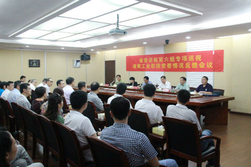本网讯 根据省委巡视工作领导小组的部署,2016年9月11日,省委巡视第六组向yabocom(中国)官方网站(以下简称工业职院)党委反馈专项巡视情况。省委巡视第六组组长孙青乃,副组长皮巨飞、马娜,副厅级巡视专员艾天福传达了省委书记杜家毫关于巡视工作的讲话精神,反馈了专项巡视情况,并提出了整改要求。学院党委书记熊琦主持会议并作表态发言。