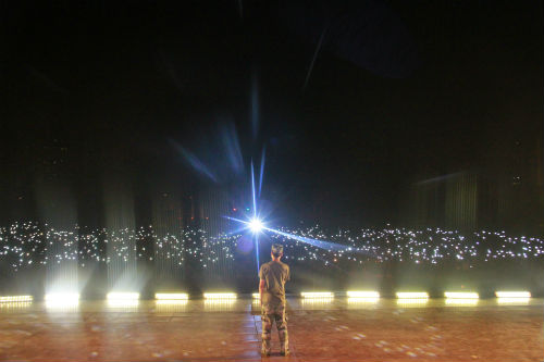 第三篇章“仰望星空 我们不忘初心”视频中展现的是优秀毕业生对新生的祝福和寄语:教官独唱《小幸运》时,现场观众纷纷打开了手机手电筒功能,全场星光熠熠,伴随节奏一起闪耀;由大学生艺术团改编、新生辅导员合唱的工院版《南山南》向全院师生传递着祝福;朗诵《我骄傲我是中国人》或激情澎湃,或深沉或婉转,展现出汉语言文字特有的音乐美和韵律美;《绒花》结合古典乐器伴奏,实现通俗与民俗、人声与器乐的完美配合;最后,在贺梅春老师指导的大合唱《飞来的花瓣》、《阳光路上》演唱完后,合唱团同学们举起了“工院我爱你”的牌子,引发师生共鸣,本次晚会也划上了圆满句号。