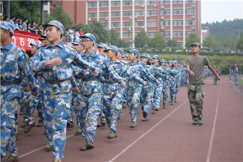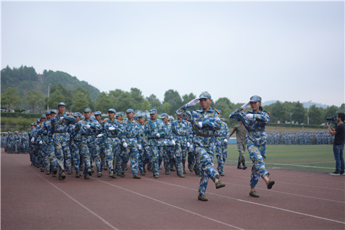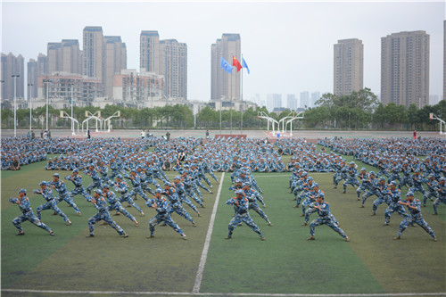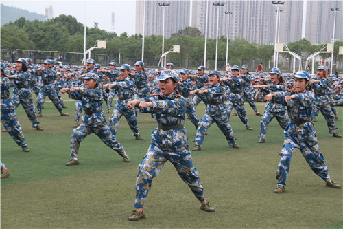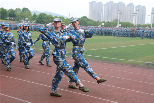 在教官的指挥下,4600余名新生列队整齐方阵,排成“工业”二字,展现我院工科专业发展特色。随后,他们铿锵有力、踏着整齐的步伐,器宇轩昂、喊着嘹亮的口号,以昂扬饱满的精神风貌经过主席台接受检阅。男子拳术连和女子标兵连更为大家带来了精彩的汇报表演,他们动作干脆利落,一气呵成。现场响起了热烈的掌声。