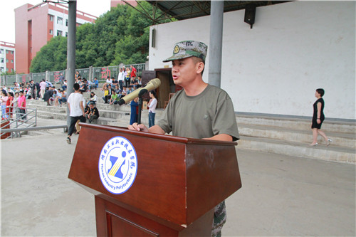 湘潭市预备兵役训练队队长李剑代表教官发言