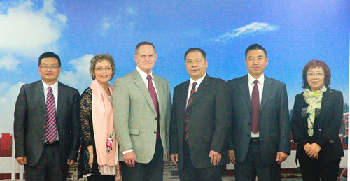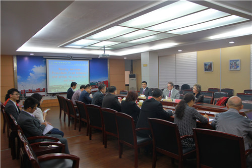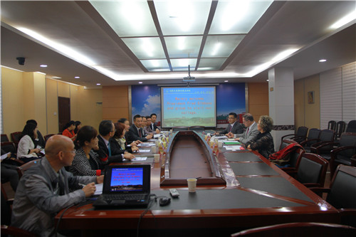 本网讯 10月12日上午,我院与加拿大北方应用理工学院代表团见面洽谈会在办公楼二会议室举行。加拿大北方应用理工学院校长Fred Gibbons及其夫人、校长助理,我院院长刘建湘、副院长董建国、副院长邱丽芳及对外合作交流处、教务处、招生就业处、机械工程系、商贸旅游系相关负责人和老师等共同参加了洽谈会。会议由董建国主持。