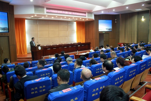 陈超宣布2015年度基层党组织书记述职评议考核结果:综合前段时间基层党组织党建工作述职评议考核现场核查情况及此次基层党组织书记履行党建工作责任现场述职情况两次评分结果,在各系(院)总支中,机械工程系党总支获得最高分,在其他总支及直属党支部中,后勤直属党支部获得最高分。