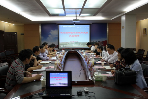本网讯 5月5日下午,湖南铁道职业技术学院院长姚和芳、副院长方全民、副院长肖耀南等一行七人来我院考察调研。我院院长刘建湘、党委副书记陈超、副院长周梦顺和党政办、财务处、组人处等相关部门负责人接待了来访同仁,并在办公楼二会议室召开交流会。与会双方就学院财务管理和人事管理等方面工作现状、特色经验及做法展开了交流探讨。