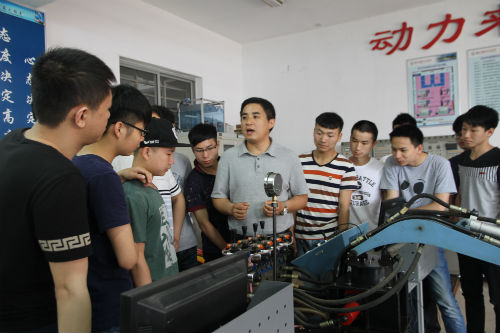我院校友、中联重科高级技师龙卫国(中)现场指导学生实训