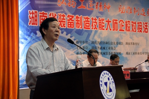 湖南省经济和信息化委员会副主任黄东红、湖南省机械工业协会会长何建国、湖南省教育厅职成处副处长朱日红、我院党委书记熊琦、我院院长刘建湘、湖南省汽车技师学院院长廖哲智、湖南机电职业技术学院副院长任丕顺、湖南电气职业技术学院副院长谭元发等出席启动仪式,湖南机电职业技术学院、湖南电气职业技术学院、湖南汽车技术学院及我院相关专业教师,中联重科、三一重工、中车株机、湘电集团、铁建重工、华菱集团等省内装备制造重点企业的二十多位国家级、省级技能大师,全国、全省劳模等参加了启动仪式。启动仪式由廖哲智主持。