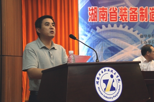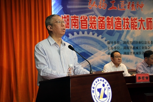 何建国在启动仪式上讲话,简要介绍了湖南制造强省建设背景,高度肯定了我院承办此次活动对工匠精神的传播与交流的重要意义。他从“呼唤工匠精神,创新人才培养模式”、“弘扬工匠文化,雕刻装备工业转型”、“培养工匠湘军,加快制造强省步伐”三个方面,呼吁全社会意识到工匠精神的可贵,多渠道加强职业教育对接产业发展,要求相关职业院校苦练内功,提高教学质量,提升学生创业就业能力,培养产业需要的大批工匠人才,壮大工匠湘军队伍,支撑产业发展,为加快制造强省步伐做出更大的贡献。
