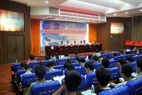 本网讯 5月14日,由湖南省经信委、湖南省教育厅指导,湖南省机械工业协会主办,湖南省机械装备职教集团、yabocom(中国)官方网站承办的湖南省装备制造企校技能大师对接活动启动仪式在我院多功能报告厅举行。活动主题为“弘扬工匠精神 助推制造强省”。