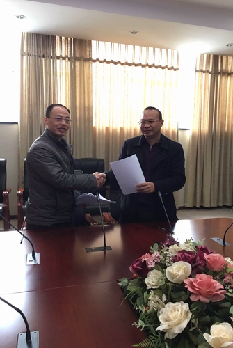 我院电气工程系主任胡汉辉(左)与楚天科技股份有限公司人力总监唐斌(右)签订“楚天科技订单班”联合定向培养协议