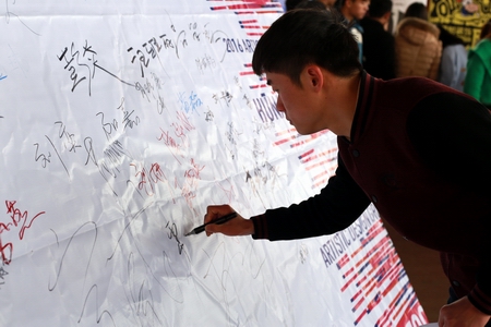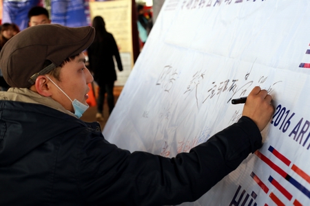 达成就业意向的毕业生们在“专场招聘会成功签约榜”上签名