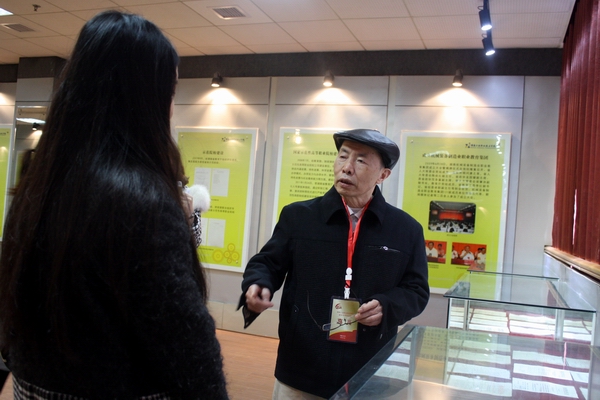 学生记者清早来到校史馆就见到了准备参加庆典的73岁老校友罗希田。