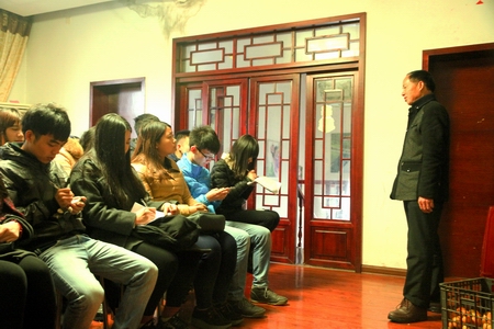 在报告会上,关山村原村长向霞光分别从关山村的基本情况、六年发展致富的经验以及未来的发展规划三个方面向在场老师和学生介绍关山村由“穷”到“富”的历程。